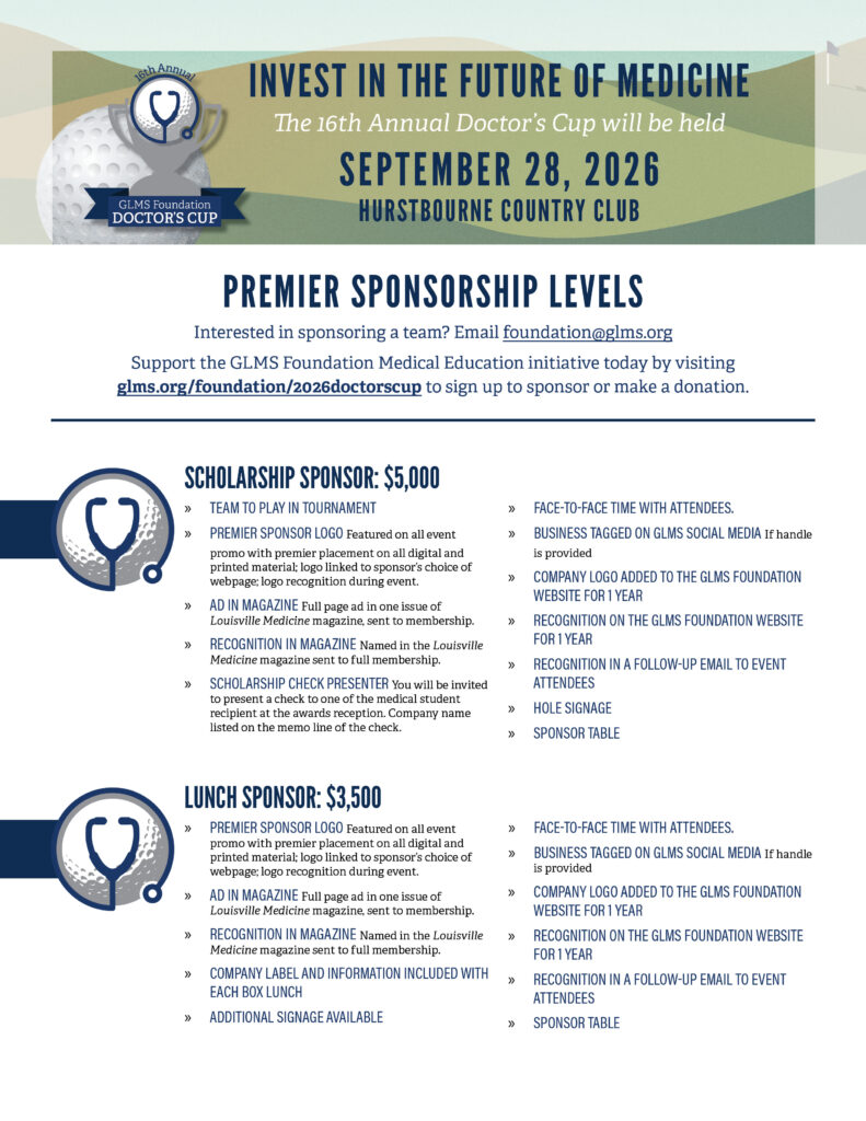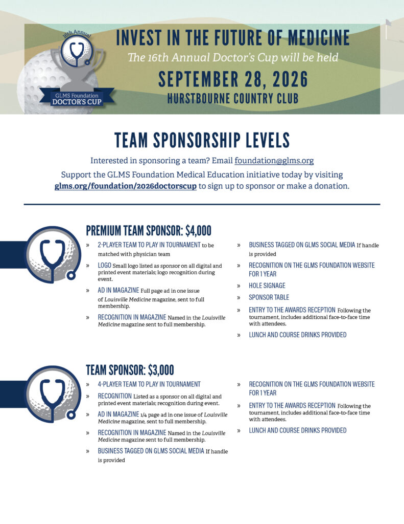For more information about sponsorships and how you can get involved with the GLMS Foundation Doctor’s Cup email foundation@glms.org or call Kimberly Risinger at 502-736-6366.